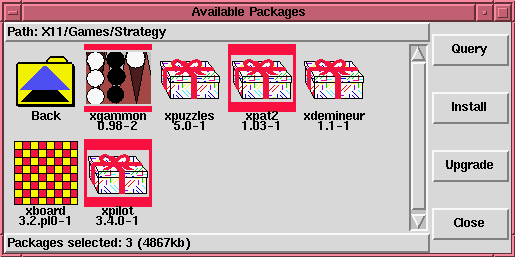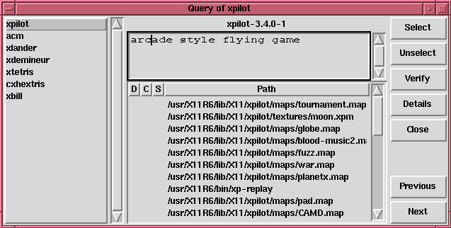 You may also select, unselect, or verify a package while querying it by using the buttons provided. Click on the Close button when you are finished looking at the packages.