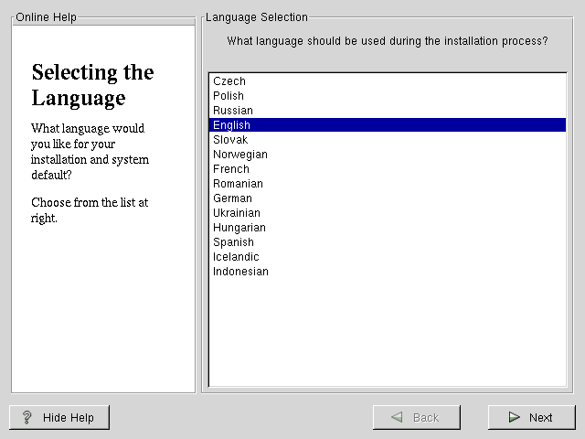 Using your mouse, please select your preferred language to use for the installation and the system default (see Figure 4-1).