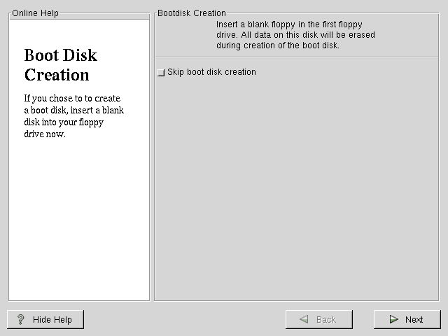 After a short delay, your boot disk will be created. After removing it from your floppy drive, label it clearly. Note that if you would like to create a boot disk after the installation, you'll be able to do so. For more information, please see the mkbootdisk man page, by typing man mkbootdisk at the shell prompt.