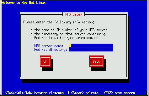 If the NFS server has the Red Hat Linux CD mounted on /mnt/cdrom, enter /mnt/cdrom in the Red Hat directory field. If the NFS server is exporting a mirror of the Red Hat Linux installation tree instead of a CD, enter the directory which contains the RedHat directory. For example, if your NFS server contains the directory /mirrors/redhat/i386/RedHat, enter /mirrors/redhat/i386.